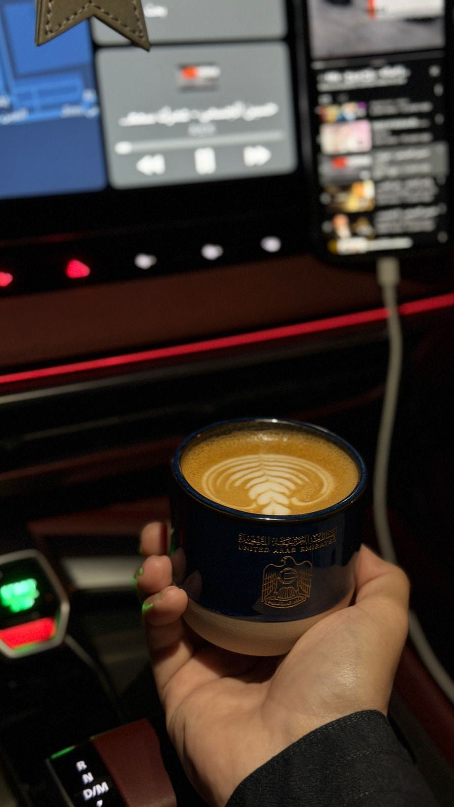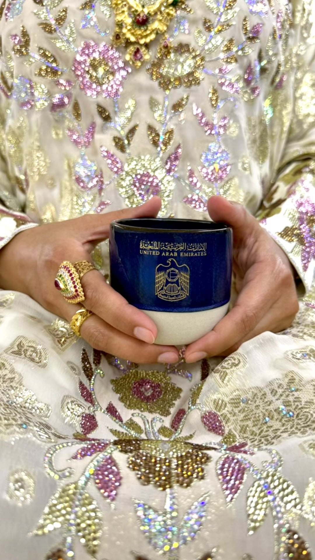 كوب سيراميك بتصميم مستوحى من جواز السفر الإماراتي، يجمع بين الهوية الوطنية والبساطة العصرية.